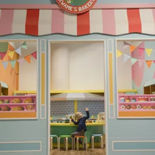 Kwame's Bakery has a full kitchen with food supplies that your child can play with.