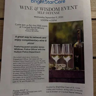 There are 3 reasons for 5 stars:1. The owner talked with the 3 of us through our flights! Super smart and funny! Would love to hang with her again!2. The wine was fabulous! Truly!! There were 3 bottles I could have purchased and been happy!! (Only bought 2). Will probably go back for more!!3. Vinny. I haven't had my leg licked like that in a long time! Thank you Vinny! I'll bring a bone next time!Didn't know they had food. We ate lunch in Hudson... next time we'll just head there!You done good Cracked Barrel! Really good!!