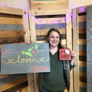 Great experience, great service, and a variety of activities for all skill levels! Katie and her staff are excellent and made the experience super fun. I loved making my "Home Sweet Home" sign and it's now prominently displayed in my house. Thank you!!!!