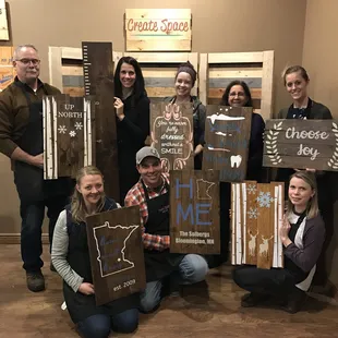 I have no idea who this "Sam K." with 3 reviews is, but she obviously had a sour tooth-premenopausal day when she arrived at Createspace and had to wait a total of....(gasp!) 15 seconds for service!I have been to Create Space many many many maaannny times! It is where I go when I need a walk in, no appointment needed, want to create and paint something creative with my own two hands. Take it from this Yelp Elite of 5 years. There are good businesses, then great businesses, then Minnesoooooootafabulous businesses who really work to cater to their cliental and provide the best possible creative experience. Createspace is that. Create. SPACE! Your space you choose to make is 1000% your own: from the wood pieces you choose to the stain arrangement of the wood, paint colors, design and accoutrements, Create space caters to every artistic type! My family, extended family, overly extended family, friends, and visiting friends have come here for always a consistently fun, creative, no judgment, all fun loving creativity sort of time. Who doesn't need that sort of experience every once and awhile?I have made 2 small projects (Cat Person, and Reading Makes the World Big) and a customed design for not that much extra saying "Be slow to judge and quick to understand" sign as well as several corn hole game personalized design (corn hole? you do not know what corn hole is??).It is BEYOND obvious that the owners of this establishment love to create arts of work and to help everyone, from those who cannot scribble inside the lines to professional artists, to find their creative mojo at CreateSpace.Stop by this place. Do yourself a favor. It is a haven of creativity and AWESOMENESS.
