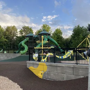 We don't get out this way that often, but since we were driving through we decided to stop and let our little guy get out and run around.We didn't know the playground was that far into the park, but eventually found it. On Mother's Day it was packed with people picnicking and playing on the cool playground structure. There are a ton of cool things to play on.SlidesSandboxHammockCargo netsLadybugs, bumblebees and so much more. Our son loved it and loved running down the colored matted hills and climbing around the smaller kid area. Really a wonderful, fun and interactive playground.Not sure we would make the trek back, but will definitely stop on the way in or out of town.Bathrooms had a super long line, only to realize it's like a icky port a john in the floor. Oh well I guess all the funds went to the playground equipment.Lots and lots of tables, picnic tables in the sun and shade.Nice paths for biking and walking etc.
