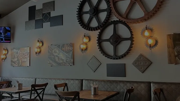 Fairly forgeable pizza shop with interesting decor. I will premise with this review that we did stop by with a large group of about 12ish? people. That being said, the experience was underwhelming. The place was understaffed, it took quite some time to get our drink, food orders, and checks. I think it was 2 people running FoH with our table and like 9 others. They were friendly and had a smile on their face, but you could tell it was a lot of hustling and bustling to get things done. I walked by here, but there's parking out front and some patio seating as well. It does face the main road, so personally was not partial to sit out since the traffic was zipping past. I decided to split a large buffalo chicken ranch pizza with a friend and was disappointed. The pizza size was good, but the flavor was very lackluster. Chicken quality was okay. The cheese was very bland. And the most important part, imho, the crust was ... just there. We asked others in our party about their food and came to the same opinion. I had a slice of the plain cheese pizza, and it word frozen comes to mind, minus a friendly Snowman.I really want to like the place since the decor makes it interesting, but being a foodie, flavor comes first. And while the decor was unique, it wasn't really integrated with the dining experience either.
