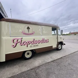 First time here. The teenage staff were really nice and friendly. I asked for a sample of the malted milk ball and heath one. I was looking for a dish called a shipwreck here. The cones have excess carbs. It's so nice that there are smaller kids size portions. Supposedly, the size of a golf ball. Mine were bigger. I got 2 scoops of kids size scoops of cherry chocolate and oreo cookie. All their ice cream is made in-house right there in the back. I ate in my car on a rainy day. Super delicious and fresh homemade ice cream. Many flavors to choose from. The other Flapadoodle location is off Highway 52. This location has a large ice cream cone outside that is white. In the other location, the ice cream cone is pink. My useless Cliff Claven observation.