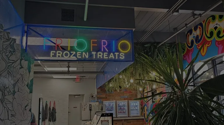 the entrance to a frozen treats store