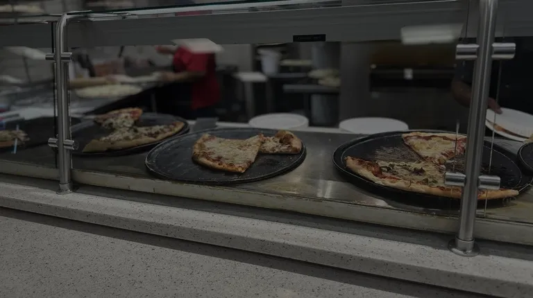 Decent pizza! I'm super basic & only eat cheese pizza here! They have a really good looking veggie pizza but I hate olives, and they have a good looking chicken alfredo pizza (that may only be available a certain day of the week, not sure) but I'm not a fan of meat on my pizza. It all looks good though. The garlic cheese bread is good. Sooo many carbs. Pizza is fairly priced $3-4 & some change per slice. It's almost always fresh & hot. The staff here are pretty nice & friendly. They keep the line moving pretty fast during rushes. You can dine in (plenty of seating) or take out. They do have a punch card loyalty program, you can earn a free slice of pizza. They run daily specials during the week. Located in the skyway, very easy to find.