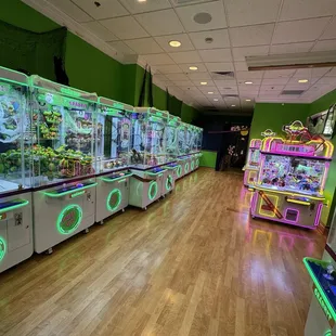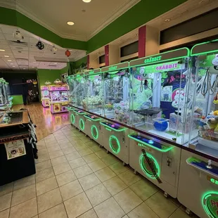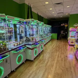 Super fun claw machine arcade. All machines cost one token to play. Each token is $1 but there are packages with better prices for more tokens. Some machines are modeled after Japanese style claw machines for different type of challenge. The owner and employees are super friendly and willing to reset the machines if they become packed in or something is out of play.Right across from the food court at Maplewood Mall.