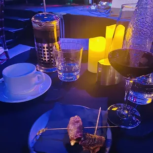 First time there and was surprised with how beautiful this venue is. Very low lighting, candlelight and a starry ceiling. I don't meant too low, it was perfect for the comedy show I saw there as part of a 10000 Laughs Festival. Dan Mintz (of Bob's Burgers voice actor fame) was the headliner and he was terrific.I didn't eat or get any drinks as I had eaten before arrival and didn't necessarily know what the place had to offer, but the server checked in with me several times to see if I needed anything and provided good service to the tables nearby. A great place to see comedy or a live performance. I should have taken photos, as the venue is really pretty, elegant, and well cared for. Lovely and underrated, check it out!
