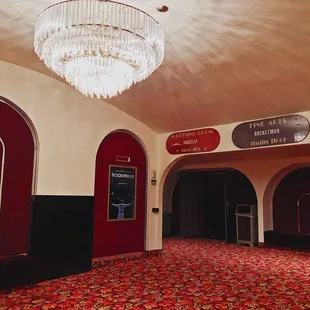 My favorite small theater around!I love the retro Art Deco interior from the entry with the giant plastic chandelier to the bathroom seating area. This theatre is not only beautiful inside and out the employees are so kind. And the popcorn is vegan! That's the best! 2 screens downstairs and up. They also offer $5 Tuesdays!
