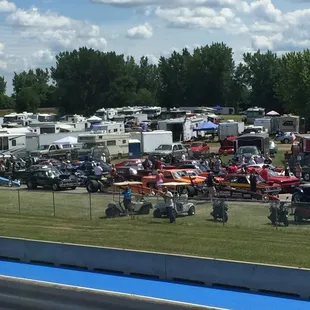 The race track is higher the. Where you park and tailgate. It would be better if they built it up a bit around the track. The reason they get 3 stars is that they always start late. For instance this weekend it was supposed to start at 4pm and it's five now and they still haven't started. The announcer has said it's last call multiple times already. Other then that the price is good and the cars are cool.