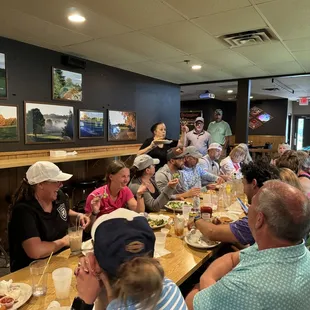 Great food, excellent menu for sports bar. Only hassle getting a seat might be during summer when golf leagues are playing. Waitresses are the best and very attentive. My wife and I go there 3-4 times a month. Attached dining room is very good for more formal seating for group dinners.