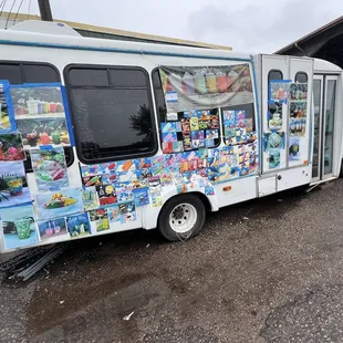 a van parked in front of it