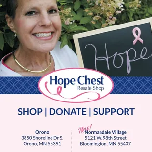Hope Chest. My new happy place! Terrific clothes (resale/new), home decorations, china and I've got my eye on a gorgeous bed. The prices are great, and of course, the cause is a good one. Thank you to the happy and helpful staff.