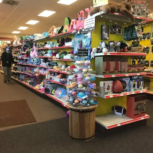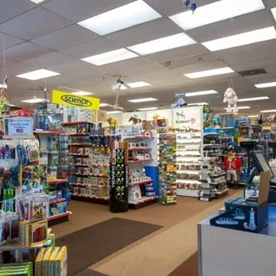 This is a fun store with a ton of things to look at. They have a small play area with Thomas Trains for the kids. The prices are about normal not to high. Its very clean, Down side is no public bath room , no carts and no garbage cans. The staff watch you like a hawk . Maybe they have a shoplifting problem. All and all 3 stars