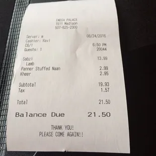 Finally tried India Palace after a long time of meaning to go there. It didn't disappoint. The food is served family style which is great to be able try several dishes. My favorite was the curry lamb. I also loved dipping the naan in the extra sauce. Can't wait to go back and try other dishes.