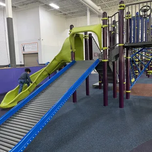 Why didn't I find this place sooner? An indoor playground in Minnesota! Woo hoo! This is great for kids of all ages even those adult kids with little kids. Even my hubby (a big kid) was shooting hoops. My young son of 4 was loving the green, purple and blue playground. There a great trampoline area, a playground for climbers, a playground for little ones, soccer field and basketball court. Even a spot for a parent to chill with some snacks or a beverage while their kid is running around. Rules...no food or beverage while playing and no shoes. They have cubbies up front for jackets, shoes, etc. Totally recommend for those needing a place for their kids to be kids and get exercise especially in the winter climate!