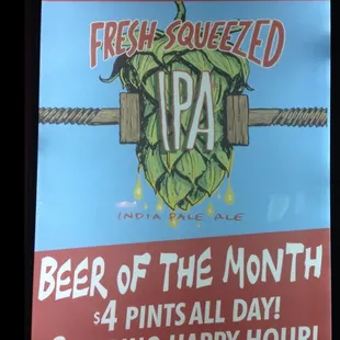 a menu for a beer selection