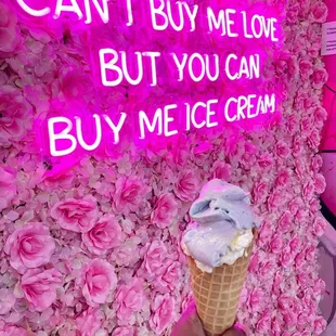 Super super expensive for ice cream. It's good, but not worth the expense. Fun floral wall for photo ops and we love the hanging egg chair too