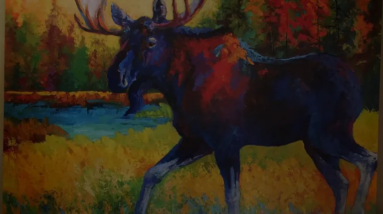 a moose holding a sign that says welcome to moose lake