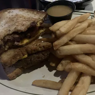 Bacon Grilled Cheese Burger with Sweet Potato Fries