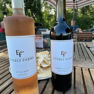 Meat, lovers pizza, and a bottle of Everly Farms rosé