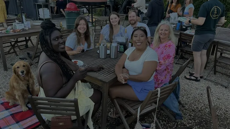 Their outdoor setup with tables, picnic blankets, live music!