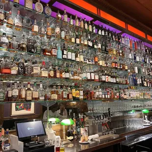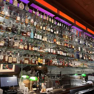 a bar filled with liquor bottles