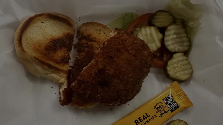 I ordered a California chic sandwich for pick up. on the menu it was a chicken breast with kettle chips. I opened my box to find a breaded patty burnt/dry, a week old stale bun probably bought last week , no sauce, and no chips. charged 12 dollars for a frozen patty slapped in a old bun and some pickles. Disgusting unable to eat.