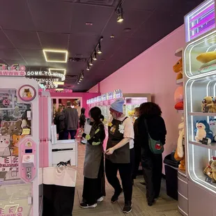 Really small spot but incredibly fun. Some of these stuffies are really heavy for the crane machines. Most of the time the claw will pick up the item and it seems like you've got it but the arms are moving so hard that when it gets to the top, it hits it so hard it drops the item. The nice thing is the staff can "help" you if you need or ask, they can help fluff or stack up the plushies to help make things easier. It doesn't guarantee you'll still get it though. Lots of cute plush options. You can't use your tokens or cash to buy certain prizes. 1 claw captured plush = 1 credit. Due to the size of the location, it can feel a bit crowded but this place is definitely worth a try.