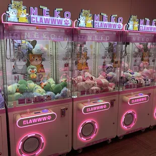 It took awhile but I finally made it out to try this place. I love claw machines and let's just start by saying this place is super cute! Neko in Japanese means cat. There is a Cafe Meow right just a couple doors down. The staff are super nice and will help you win a prize you want. Love that. The decor is also super cute and the prizes are super cute as well. Now let's talk about the machines themselves. The claw strength is medium it's not super strong and the games do take skill. The machines do shake when you move the claws super fast so that caught me off guard. But it's not impossible to win prizes . Your best bet is the flip prizes or swing prizes into the prize chute. The prizes to trade up are also super cute. Definitely recommend to go have fun. Everyone can win. I will be back.