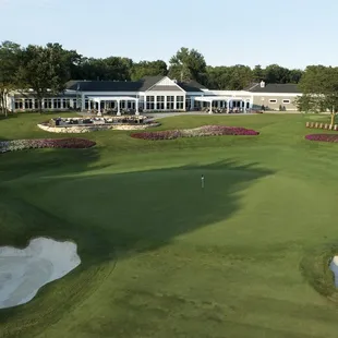Stunning view of the 18th green from the patio.