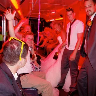 Great looking wedding group on our Pink Diamond Party Bus!