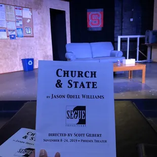 Waiting for play to start. Sitting in row 3, off center of stage right.