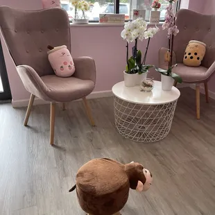 the waiting area of a salon