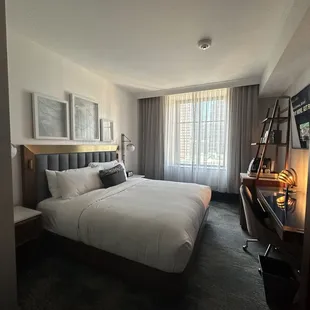 I stayed at the Rand hotel for about a week when I was out in Minnesota. I like that I was able to walk everywhere and it was about 30 minutes from the airport without traffic. It was also about a block from the train stop which is another plus. There is two entrances to the hotel on the ground level. It is also accessible by skywalks. I found check in to be fast but they didn't tell me about my bonvoy status benefits. I had to messaged them to find out that I had free breakfast or 1k points for my status. The elevators were a hit or miss for slowness. I didn't like that there was only one side of the elevators that take you up to your room. To get in your room it is accessible with my room key but the digital key doesn't work for elevators. My room was a good size and the bed was comfortable and soft. There was a good amount of pillows (2 feather down and 2 foam). The bathroom was cool too. The water pressure was okay and the mirror in there was a motion sensor mirror which I liked. The shower had its own separate light and they still provide toiletries at this hotel. What really annoyed me was they did not provide an iron but had a handheld steamer which was disappointing. The room overall was cool except it could use more light. It was too dim for me. The room did have an awesome view of downtown. I liked that the TV had good channels. And there was a fridge with a K-cup machine by Lavazza. It was also really quite in there and was basically sound-proof. I didn't hear anyone in the hallway. During my time at Rand, I called housekeeping twice. The first time they were quick but the second time I had to ask twice. Overall it was cool and I had a good experience.