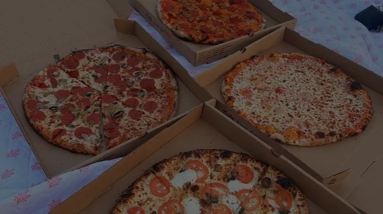 This place takes cash OR check only! Be advised. You are allowed to bring in your own drinks if you'd like, including alcohol. You can also bring in sides, plates, napkins, and chairs. There is ice cream available for purchase. Upon arrival, this place was packed. No wonder why you need to make reservations! Our pizza was done cooking within 5 minutes of us ordering it. We picked it up, & it was hot & fresh.