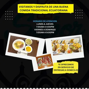 We are open EVERY DAY!! Monday-Thursday 7AM to 4PM. Friday-Sunday 7AM to 9PM. Come to enjoy our authentic Ecuadorian Food.