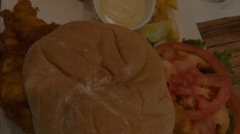 We walked over from the next door hotel because Homewood employees told us that the chef here at Saints had provided the chicken barley soup they served Wednesday evening- and that was terrificI normally would not have tried a hotel restaurant but I'm happy we came here because we had little energy remaining after a day of Mayo testing and the atmosphere here is very friendly, comfortable and inviting-We both ordered the Canadian Walleye sandwich (my moms without bread because she has celiac) and a few drinksI'd suggest the Canadian walleye at least once while you're in the area- you'll see it on most menusThey have a Kona brew here on draft for $6 that was great tooService very friendly and you can "come as you are" here- lots of people on their own at the bar