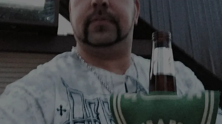 a man holding a beer