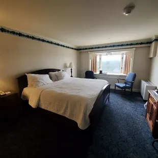 5 Drawer dresser, flat screen TV, small complimentary water bottles and 2 windows with River views