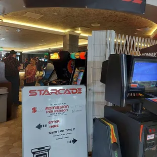 Enjoyed visiting Starcade for my husband's birthday. He loves retro video games and this place was paradise for him. It was an all you can play in a day set price of $15/person. You can leave and come back with a wristband which was nice. There were arcade games from the 70s -2010s, lots of driving games, shooting games, roller ball games, DDR type games in addition to your standard joystick type games. Only thing there isn't is pinball. Definitely brought us back to our childhood on some of them. We'll be back for some more fun!