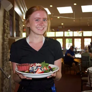 I'm pretty sure I know what to tell you not to order. Do not order the Thai chicken bowl. Tasted like the frozen chicken and you microwave at home and the rice was terrible. Other than that the food looked good at other tables. My friend said the walleye was really good. The pretzel sticks were amazing. Also it's super loud in there when all the golfers come in, So if ambient noise makes it hard for you to here definitely skip it.