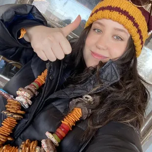 This was my first time at the beer dabbler and it was super fun! Tickets are $55 for all you can drink + a souvenir glass. At the event, you can go stand to stand to sample all of the different drinks (each brewery had 3-4 options on tap). It was definitely crowded but that added to the energy! Be sure to keep moving in the beginning, once it got closer to 6pm lots of the breweries we're running out of the popular options. Another fun tradition I learned about was snacklaces! My friends and I got together the night before to build them and they definitely kept us fueled in the cold for the entirety of the event.