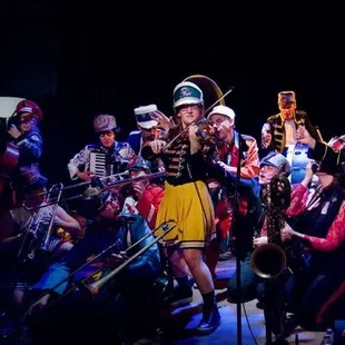 a group of people singing on stage