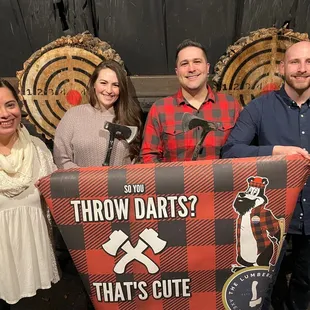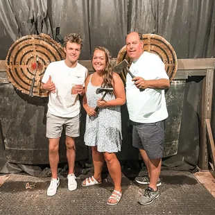This was a great place to gather for a large family group including some tweens during the recent holiday week. The place was empty except for us - must have been too nice to be inside. The space is large and has some games and couches in addition to the axe throwing alleys.The owner did a nice job of explaining the rules, safety precautions, and technique for throwing the axes. For most it was a new experience and they caught on quickly, others eventually figured it out and some of us were just hopeless (despite this being my 2nd time axe throwing). Nonetheless we all had a good time competing with lots of laughs. And no-one got hurt!They had a wide selection of beer and drinks and some food available. A good way to spend an hour or so with friends and family.