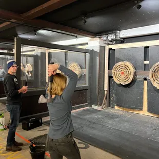 First time in & the four of us had fun & drinks with some instruction or guidance that was helpful & encouraging. We had some laughs & we'd do it again. I think the owner could replace the beaten up targets more often. Then, I'd give it 5 stars. It's an active & focused way to have fun! Safety first, have a beverage and if you're hungry they have appetizers, laugh with friends & be merry, pick up a new skill.