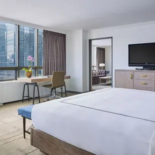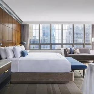 We stayed here for an evening with plans to attend a concert at the Armory. Check in was fast, easy, and pleasant. Valet parking was a little steep at $50 without tips. However the valets were fast, helpful and pleasant! We stayed in a corner king room on the 23rd floor. The layout of the hotel is wonderful, our room felt very private, we did not hear a single person all night and it was a very busy night in the city that night. Our room was nice size, beautifully decorated and clean! The windows and views were spectacular. We slept like babies in the fluffy, clean bed and loved the hot, high water pressure shower, appointed with the best smelling shampoo, conditioner and body wash, it was like being at a spa! Would highly recommend!