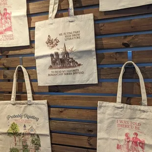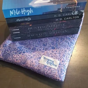 The store offered a wide selection of romance novels, thoughtfully categorized by type and sub-genre, with tables for everything (historical, L.G.B.T.Q., YA, supernatural, romantasy, sports-themed, vampires, aliens, enemies to lovers, forced proximity, forbidden love, secret identity... I could go on). They also carry both indie published and traditionally published books!Customers are encouraged to leave book recommendations on cards for each other, so you can spread the love for your favorite. Staff are super friendly and even all the customers seemed determined to make this a welcoming and inclusive space. I fell in love with the tote bags, couldn't decide which one to buy, and then bought all three of them. Then, on the way to check out with my pile of books and pile of tote bags, I got caught by the stickers, and had to buy some of those too.Tropes & Trifles is a wonderland and I wish I could live there.You should absolutely support this women-owned, local and independent business.