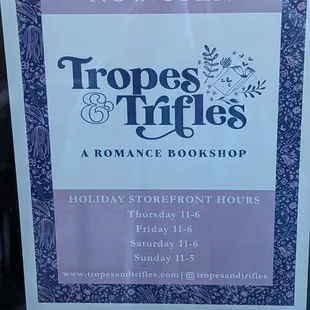 A wonderful first time at Tropes & Trifles. I love supporting small bookstores and one focused on romance is exactly up my alley!The store was packed only 20 minutes after opening and they had lots of staff available to help with the long check out lines and give recommendations. It was awesome to see the owners spending lots of time with customers giving great recommendations. I loved that they had a recommendation station where visitors can leave recommendations or reviews on the shelves for books - such a fun way to engage the community. They had a large selection of books that were well categorized and organized. I love and aesthetic book shelf. Will certainly be back!!