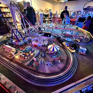 The Twin City Model Railroad Museum is a fun and engaging spot, especially for kids who love trains! The only other museum like this I've been to was in San Diego, and it had many small, self-contained rooms set up for some of the realistic scenes; this museum has most of their displays in a single massive room, and the emphasis is more on whimsy than realism. Signs encourage kids to not touch the sets, but there are buttons everywhere enabling people to start trains or trigger other accessories to move, like Ferris wheels or planes. An adjoining room shows a train set build in progress. The gift shop largely consists of older model train supplies and books/magazines.When we visited on a Saturday, we found the place to be busy but there was still plenty of room to move around. I appreciated that hand sanitizer stations were everywhere--a good thing, as lots of hands are pushing buttons! The museum itself is in a strip mall that's in a larger industrial area. Parking was free and abundant.