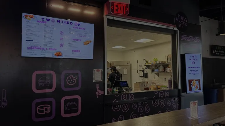 When I came to Graze before a Twins game one day, I wandered around to check out all the options for grabbing lunch and finally decided on trying Two Mixed Up. While I had really wanted to try the birria tacos (they were sold out), I ended up deciding on the mushroom swiss burger (a double smash burger topped with mushroom, onion, swiss cheese, and house sauce). The burger was sizeable and smothered in cheese... I actually ended up needing to eat the burger by cutting bites with a fork, otherwise it would just have been a bit *too* much of a mess. Personally, I also could have used some more onions on the burger itself... but I had some delicious, crunchy onion rings as a side and that helped appease that craving. Prompt and friendly service here. Obviously, the ambience is encompassed in the larger food hall-concept (which I found to be enjoyable). Burger was a bit greasy and unwieldy, but still tasty.